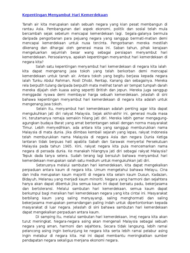 Kepentingan Menyambut Hari Kemerdekaan Pdf